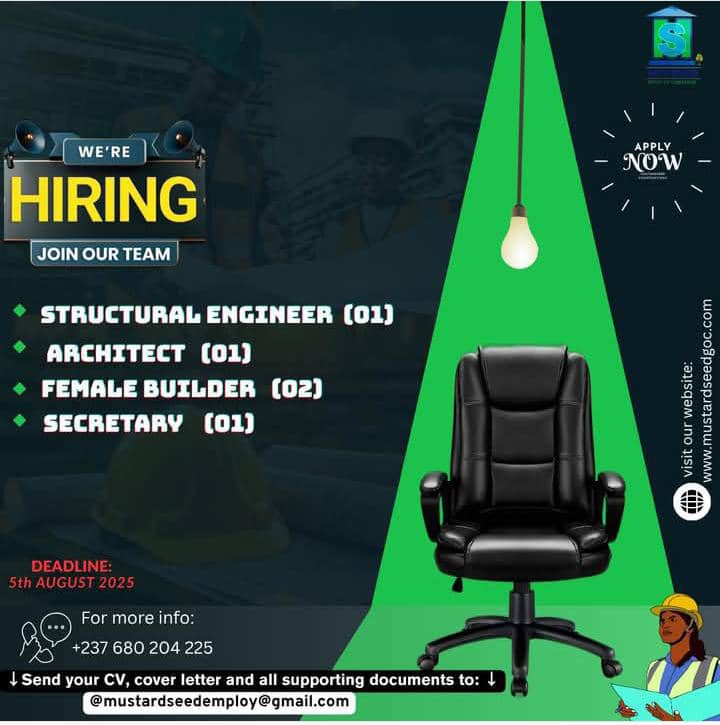 Le groupe Mustard Seed Engineering and Construction Company Ltd lance une campagne de recrutement pour renforcer son équipe professionnelle. Plusieurs postes sont actuellement ouverts aux candidatures. Si vous êtes passionné(e) par le domaine de la construction, de l’ingénierie ou de l’administration, cette opportunité pourrait vous convenir.