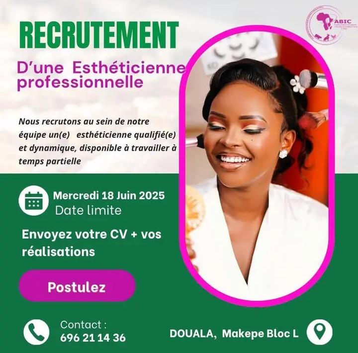 Nous recrutons une formatrice professionnelle en esthétiques pour intégrer notre équipe dynamique à Douala.