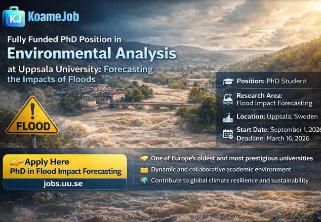 Fully Funded PhD in Environmental Analysis at Uppsala University, Sweden (Flood Impact Forecasting) Bourses d'études février 17, 2026