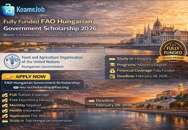 🌍 FAO Hungarian Government Scholarship 2026 | Fully Funded Master’s in Europe Bourses d'études février 17, 2026