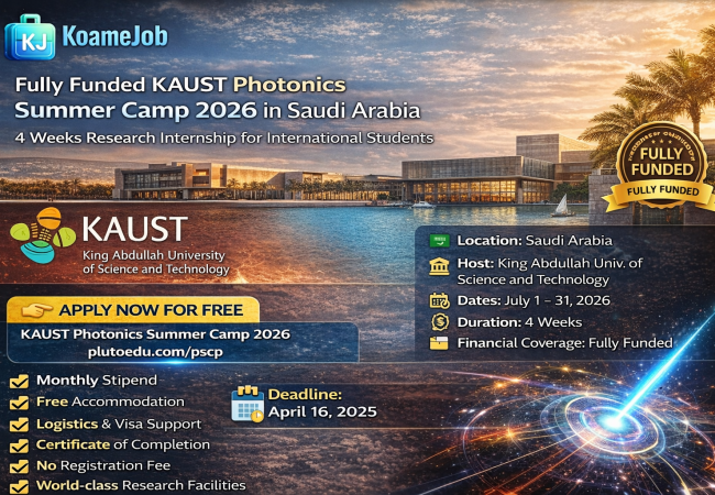 🔬 KAUST Photonics Summer Camp 2026 in Saudi Arabia | Fully Funded Research Internship Bourses d'études février 17, 2026