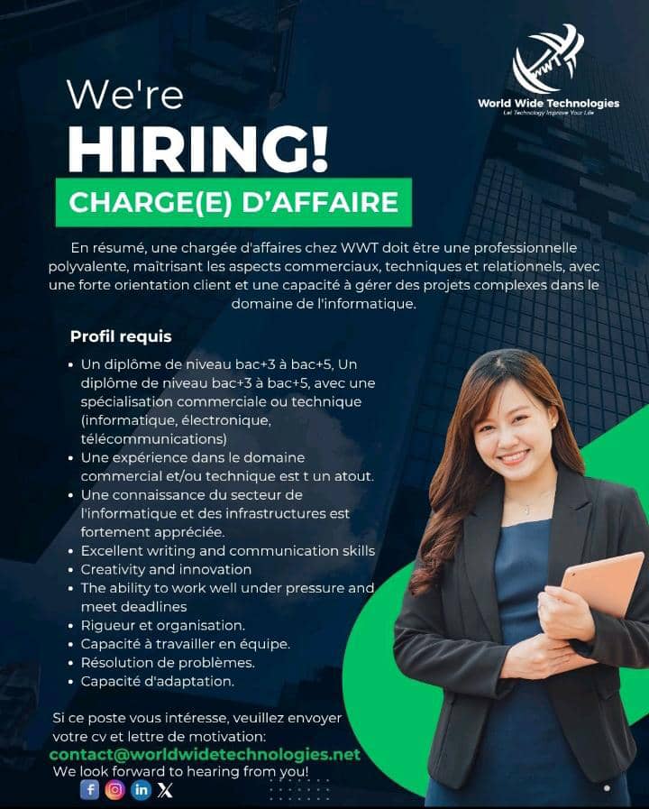 Offre d’emploi,Chargé(e) d’Affaires, World Wide Technologies, (WWT)